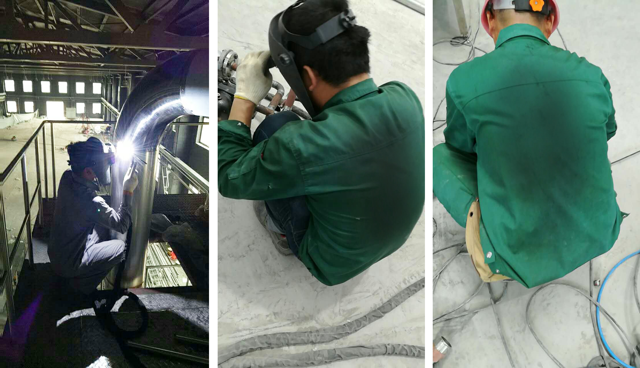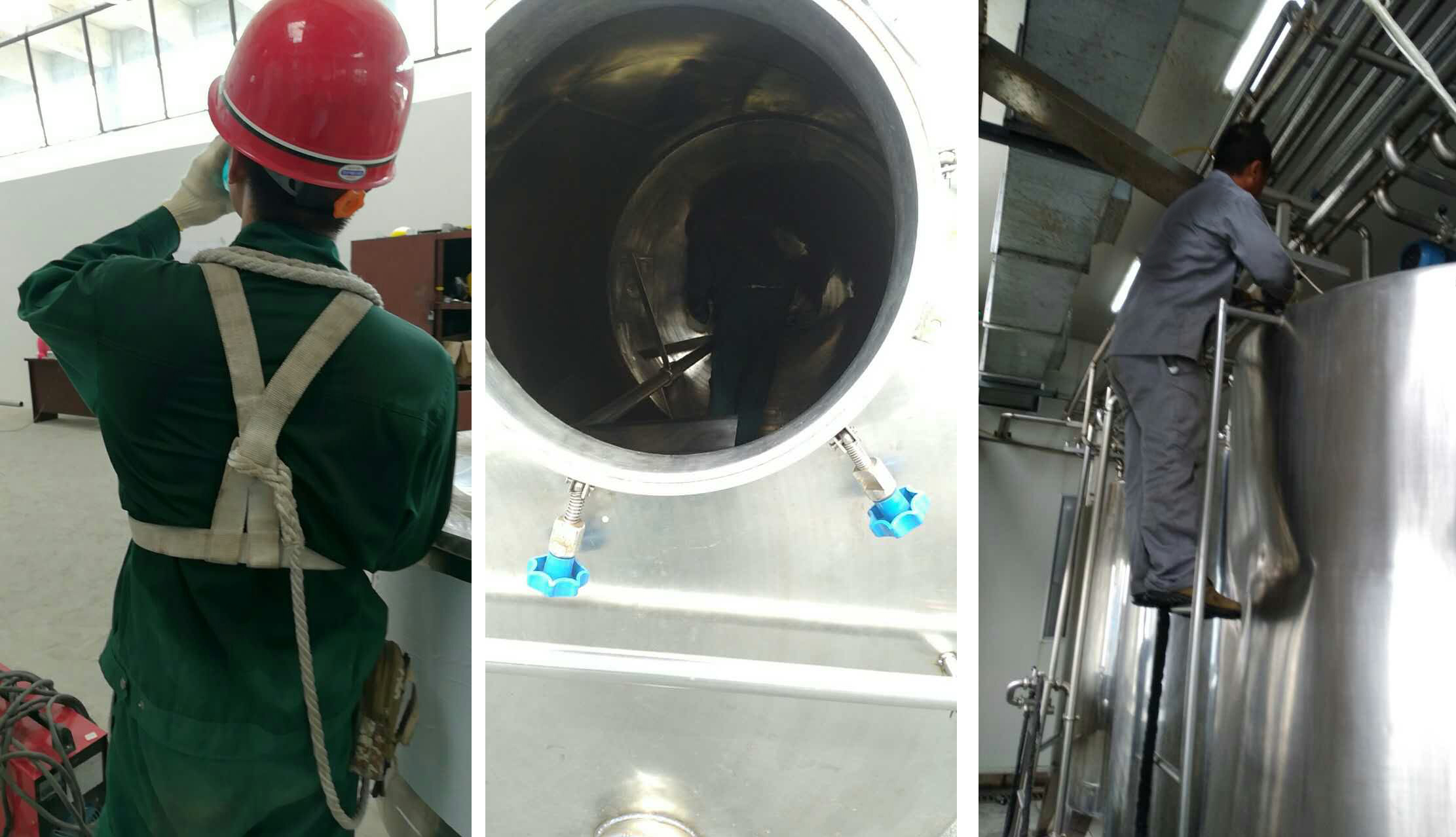 高溫下的不銹鋼表面就像是燒熱的烤板,碰在上面,就是強烈的燒灼感;在通風條件差的罐內溫度明顯比罐外又要高出幾度。汗水浸濕了衣衫,手上的工作仍在繼續,因為,按時交貨、如期完工,是我們的承諾。