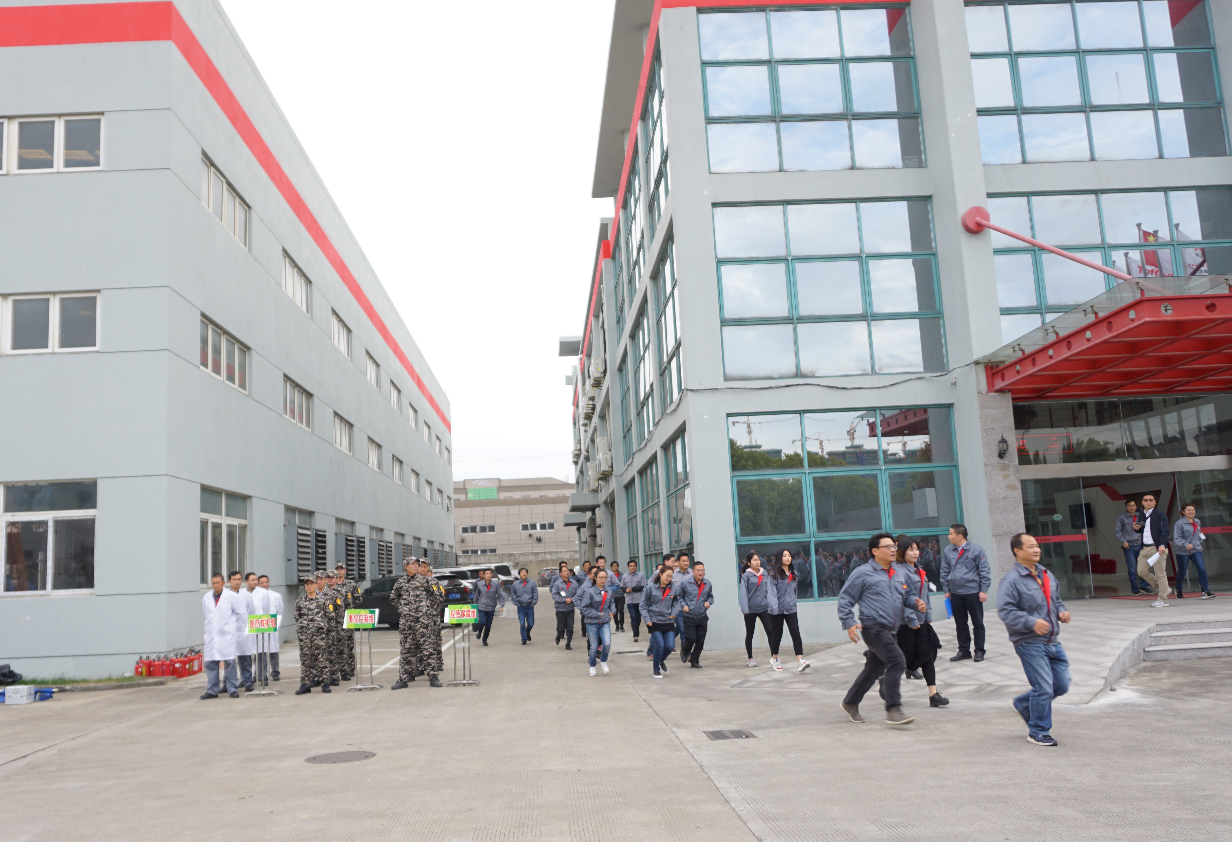 下午15:30,隨著防火警報聲響起,參加消防演習的人員迅速在各方隊負責的指揮和安排下,按指定路線、用最短的時間井然有序地到達廠區空地。
